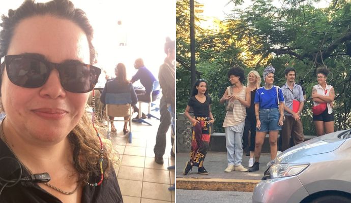 Apaixonada por cinema, Renata Roberta, de 40 anos, nasceu e cresceu no bairro de Casa Amarela, Zona Norte do Recife. Embora more em São Paulo há cerca de 15 anos, onde divide sua rotina entre a atuação e a produção audiovisual, suas raízes permanecem vivas. Enquanto aluna do Colégio de Aplicação, ela se viu imersa nas artes através da cultura popular. “Começou com música. Lá, a gente tinha contato com o maracatu, cavalo-marinho, pastoril e foi como brincante que tive meu primeiro contato. Depois, fiz Artes Cênicas na UFPE, fiz curso técnico de cinema. Aí, foi quando fui pra São Paulo para trabalhar como atriz e fiz uma novela”, relembrou.
